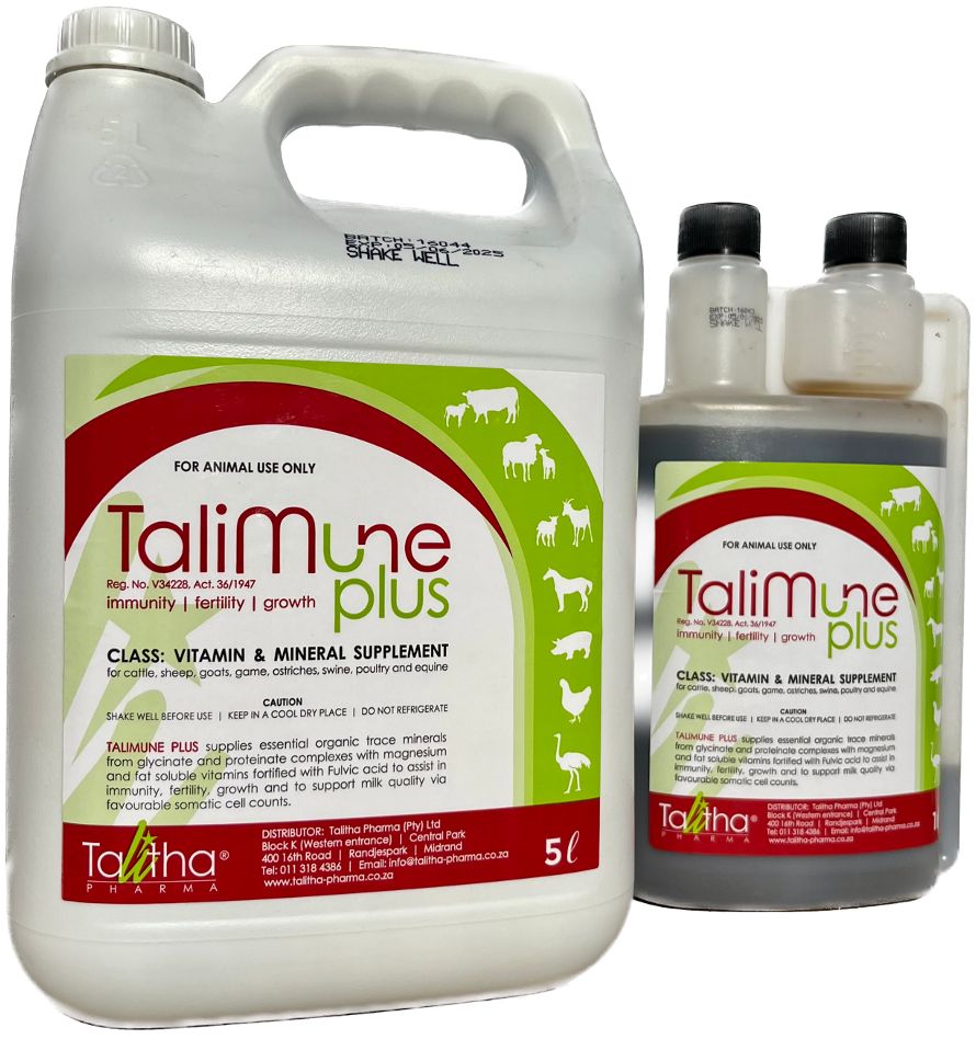IMMUNITY, FERTILITY & GROWTH TaliMune PLUS supply essential organic trace minerals from glycinate and proteinate complexes with magnesium and fat-soluble vitamins fortified with Fulvic acid to assist in immunity, fertility, growth and to support milk quality via favorable somatic cell counts